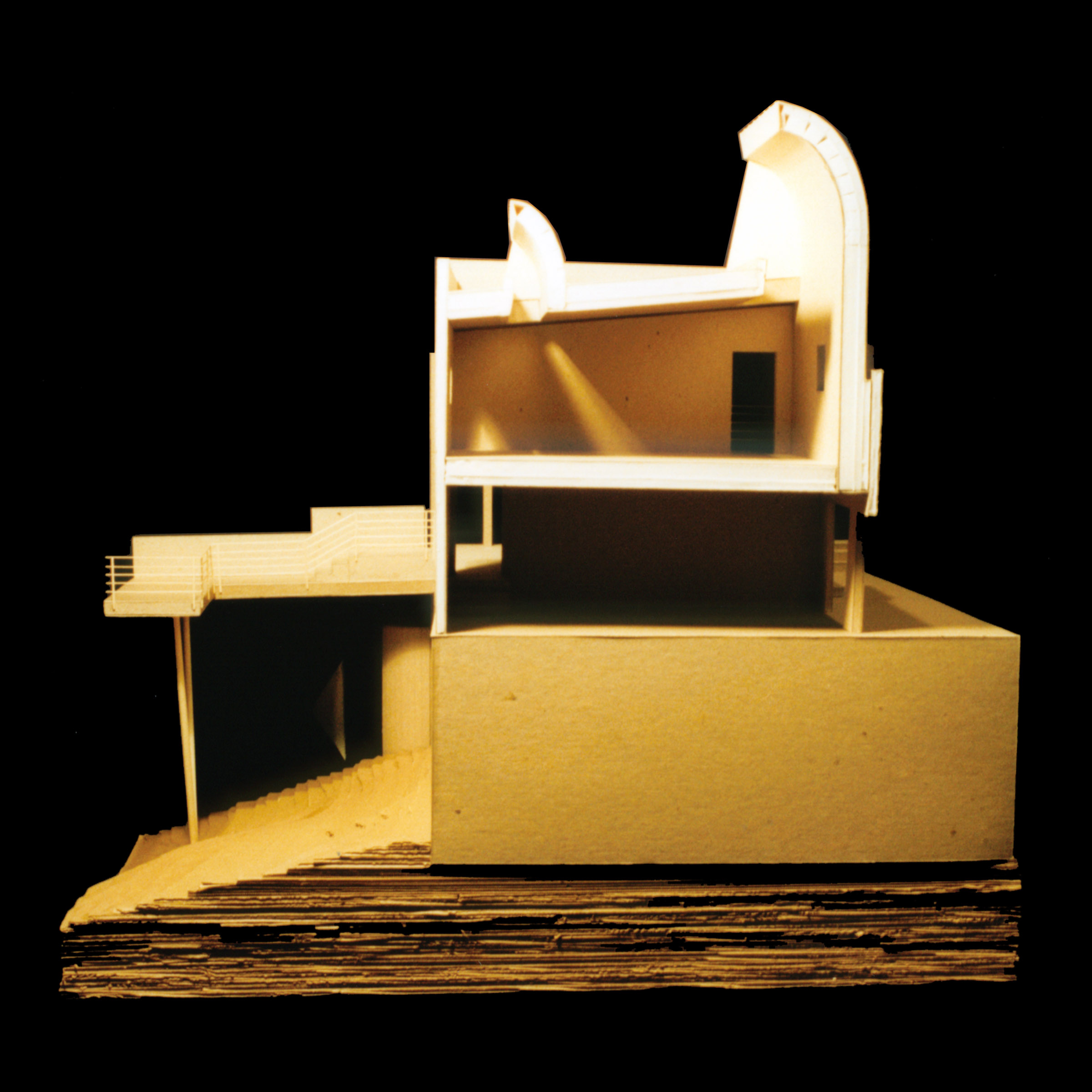 reinterpreting the experience of the site. Within the space, a parabolic curve,
