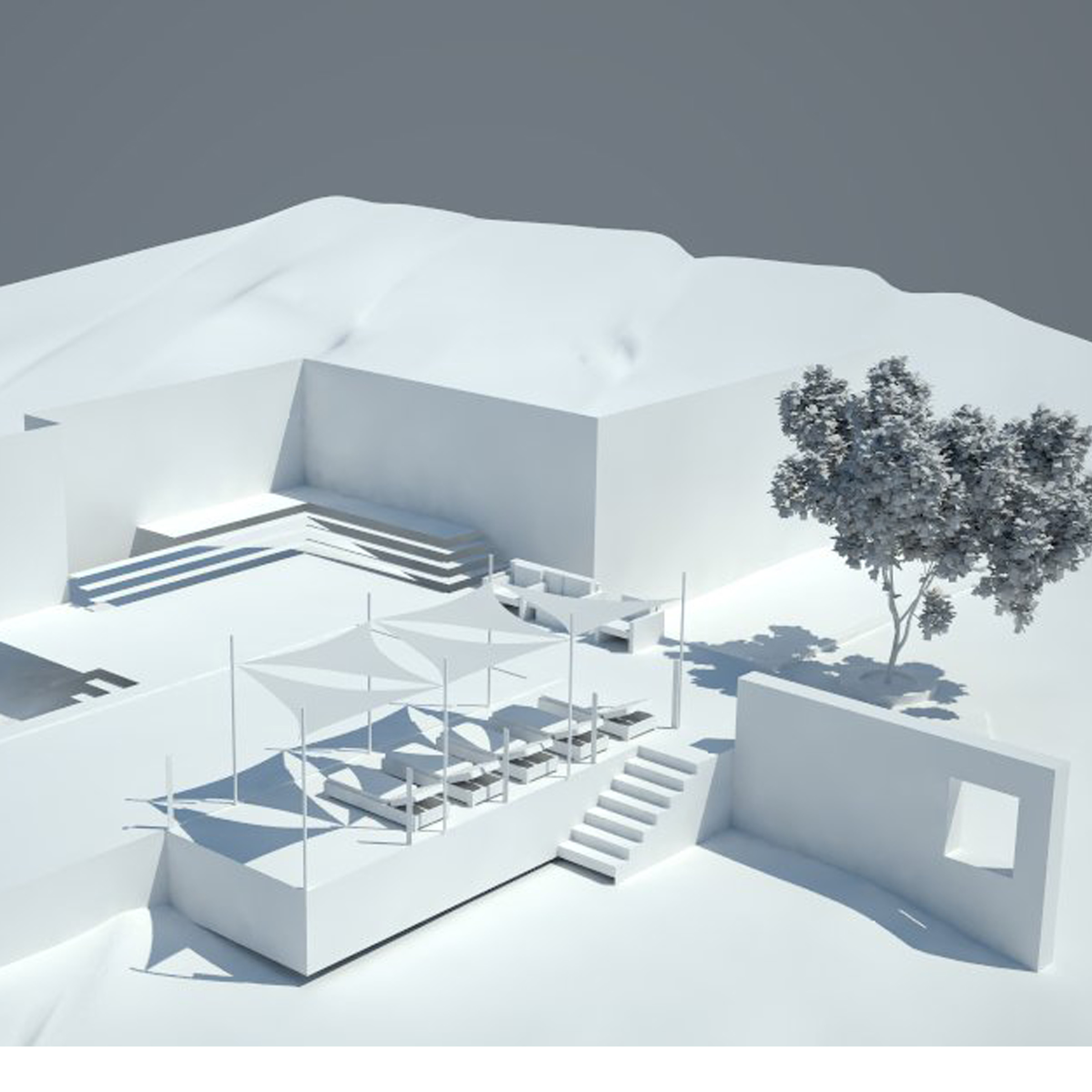 The scheme for the pool area and garden extended the plane of the wood deck to create a more generous scale and increase the sense of floating atop a hill. Sail like canopies cover the lounge area and recall the bay just across the street. The grand wooden stair creates an easy connection between lawn and pool; its scale relates to the scale of the larger property, thus increasing a sense of openness and calm.